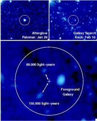 El grupo también obtuvo imágenes de Keck luego de que se apagara el fulgor. Sorprendentemente, las imágenes no mostraron una galaxia en ese lugar.