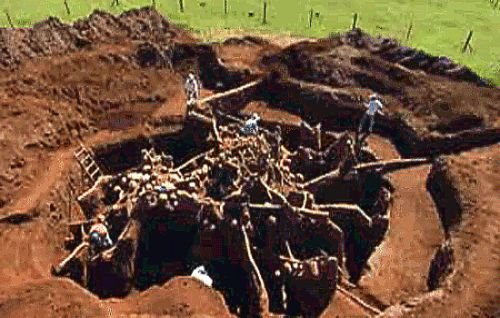 Semanas más tarde, comenzaron una cuidadosa excavación del terreno. El resultado fue asombroso: cientos de corredores, ductos de ventilación que utilizaban el desperdicio para generar una presión negativa que expulsara el CO2, depósitos de larvas y cámaras de "cosecha" de hongos (las hormigas, y en particular esta especie, cultivan parte de su alimento al igual que los humanos). El resultado: una verdadera ciudad "extraterrestre", de cincuenta metros cuadrados de extensión y ocho metros de profundidad, en la cual se distribuían cientos de cámaras y ductos.