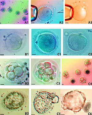 Entre las tres mujeres, se consiguieron 29 óvulos. El núcleo de estos óvulos fue reemplazado por el de las células de la piel adulta, un procedimiento denominado transferencia nuclear, hasta dar lugar a 21 embriones humanos. De todos ellos, sólo cinco sobrevivieron lo suficiente para llegar a tener entre 40 y 72 células, una etapa embrionaria que se denomina blastocisto.
